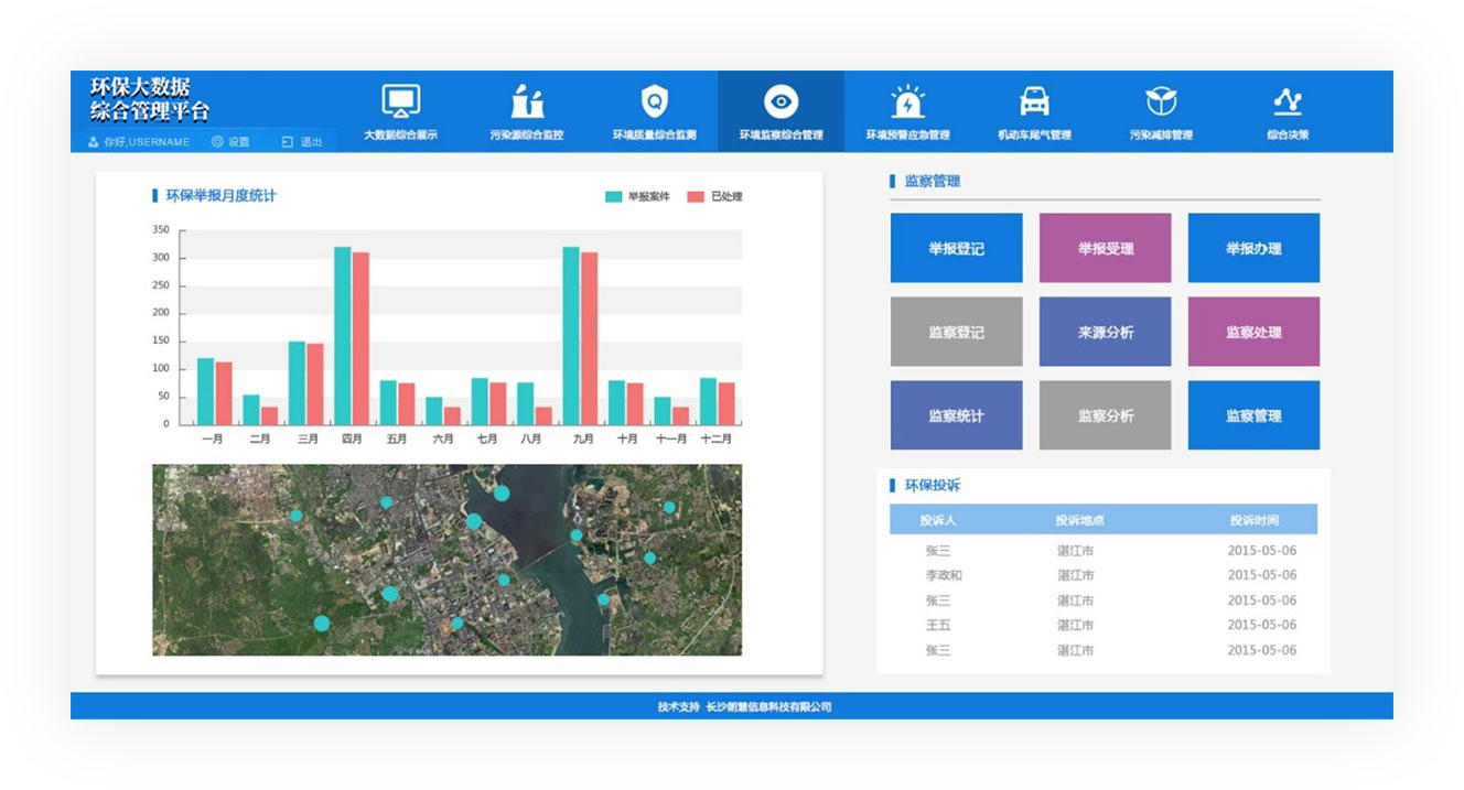 实现环境监察事件的全覆盖,包括环境行政处罚、专项行动、稽查管理、环境信访、随机抽查等。